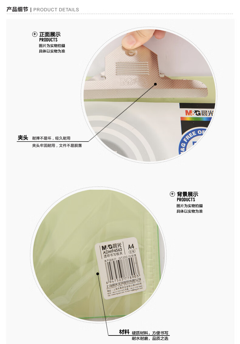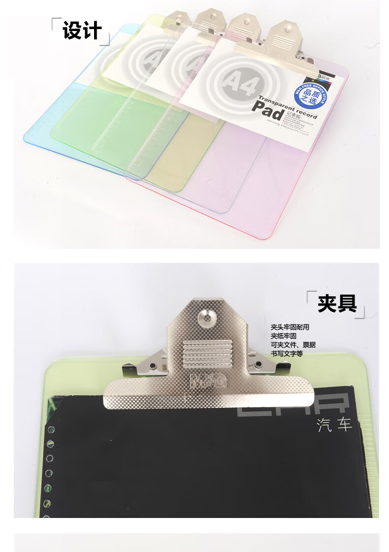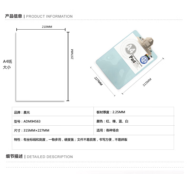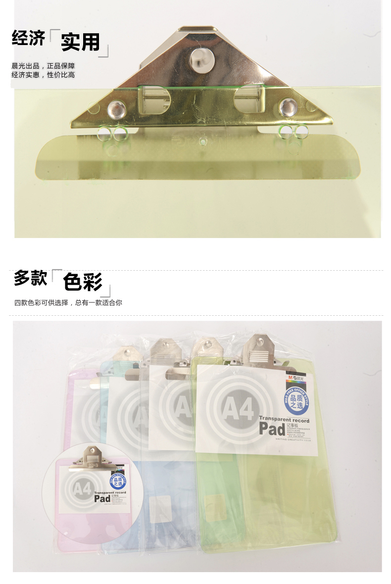 晨光(M&G)文具A4透明板夹 带刻度尺学生试卷书写板 诗朗诵签约板夹文件夹 颜色随机 2个装 ADM94563