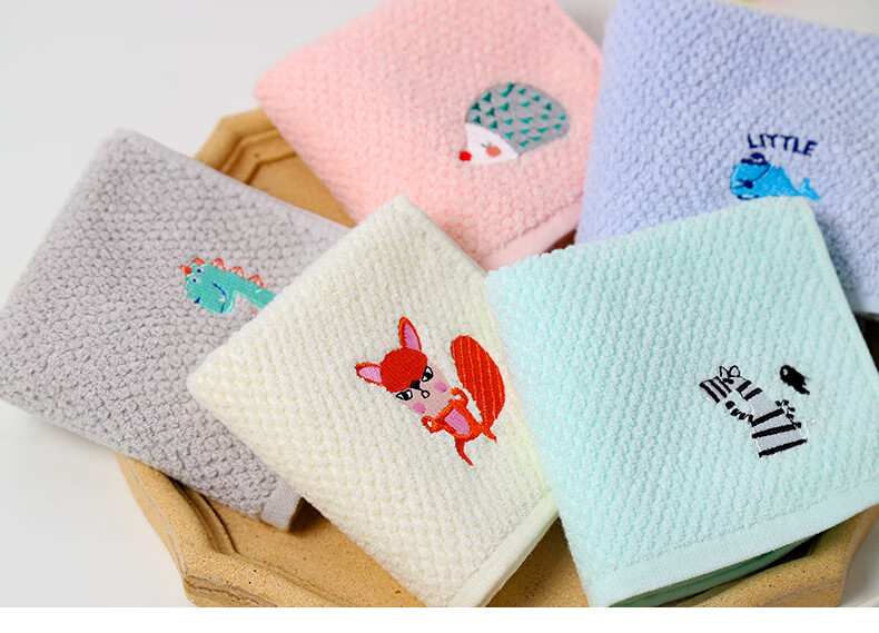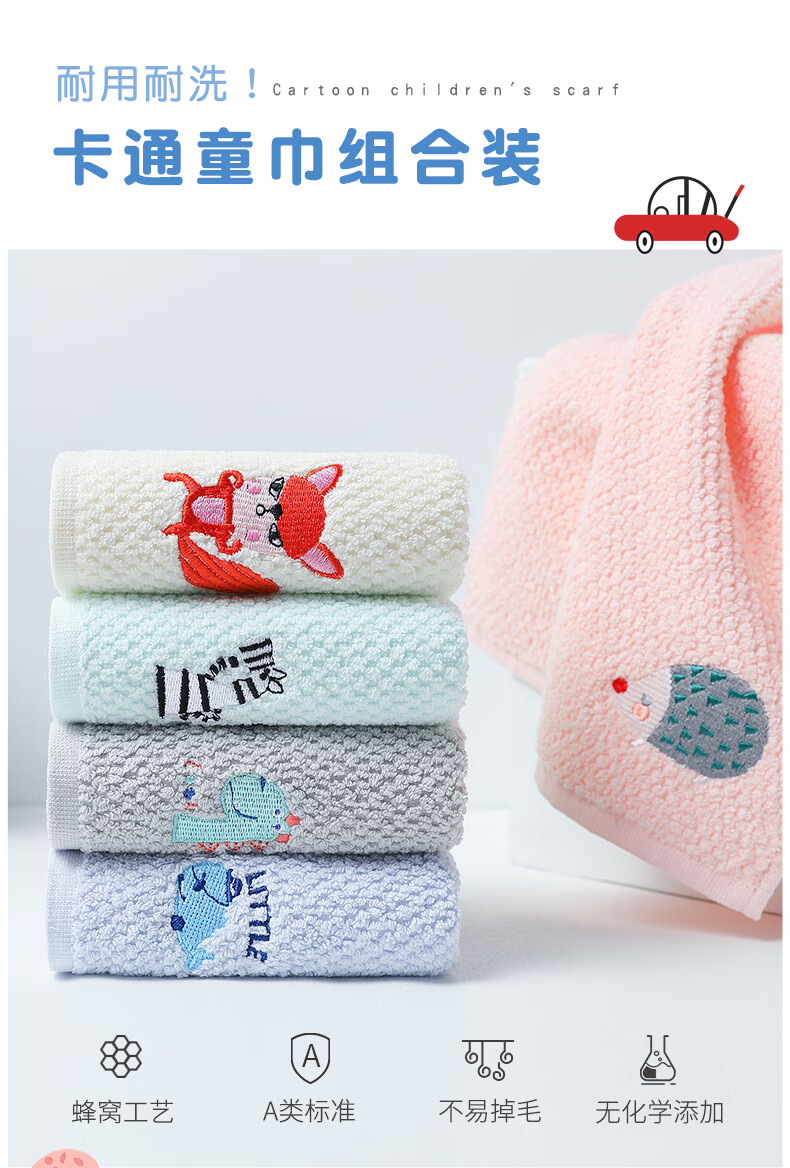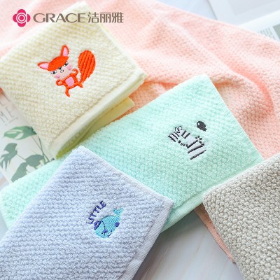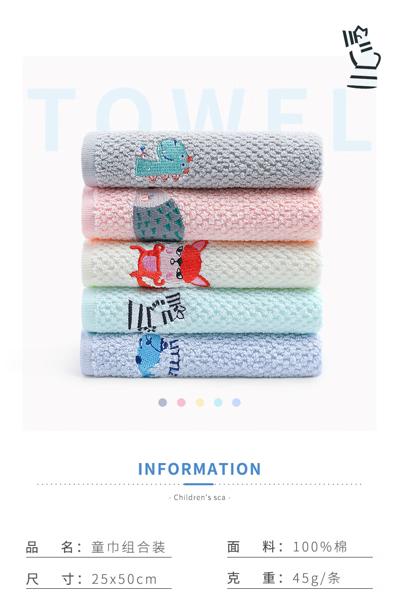 洁丽雅(Grace)新疆棉童巾儿童毛巾 A类纯棉洗脸家用卡通可爱童巾宝宝吸水小毛巾 5条装 25*50cm