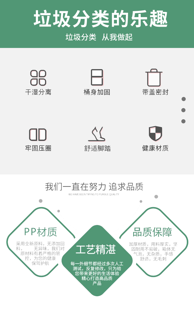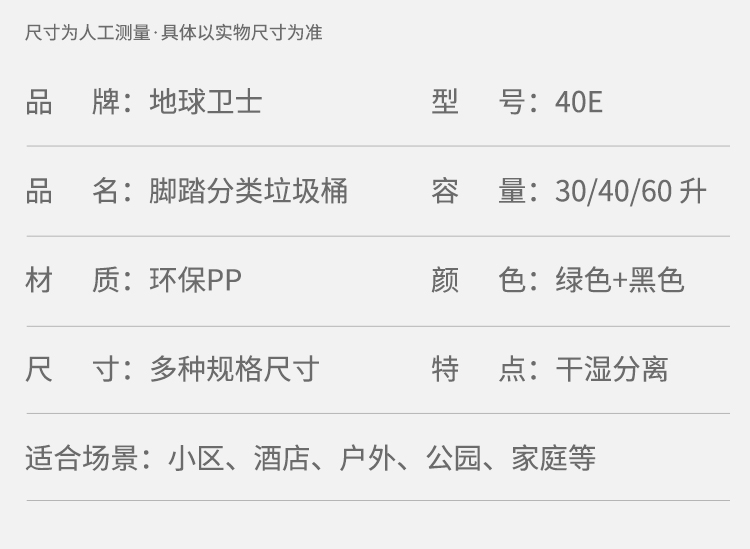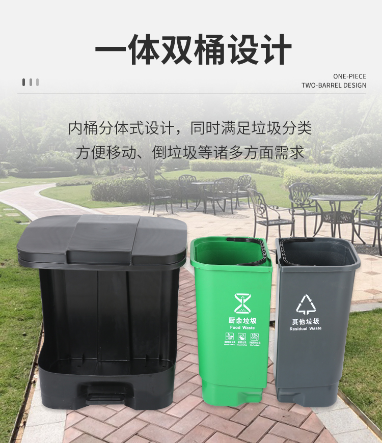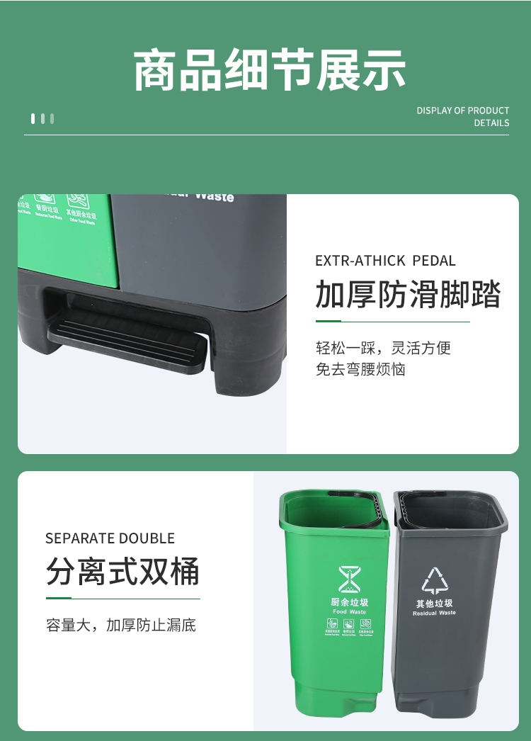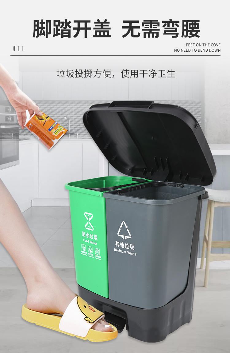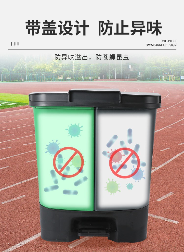 地球卫士 40L双桶脚踏垃圾桶带盖分类垃圾桶厨房商用塑料40升垃圾桶(绿+黑)