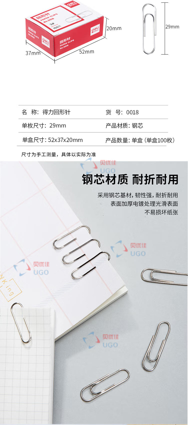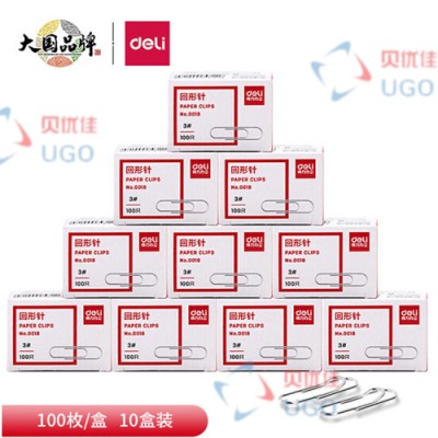 得力(deli) 10盒装 3#金属回形针 镀镍防锈曲别针 100枚/盒 1000枚/组 SKU:BYJ021316373742
