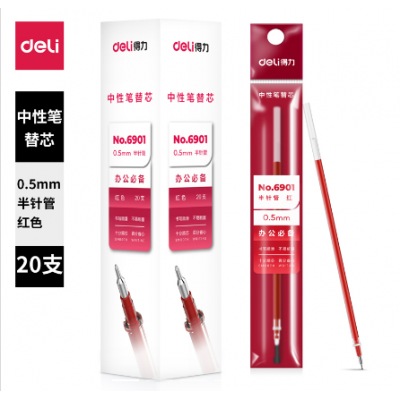 得力6901中性笔芯0.5mm半针管(红)(20支/盒) DBJ0214134253242